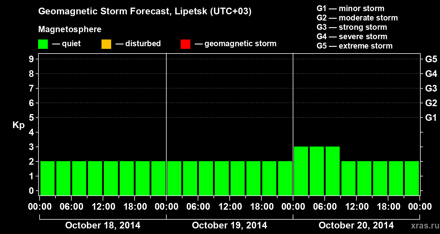 Geomagnetic storm forecast in Lipetsk for Oct 18, 2014