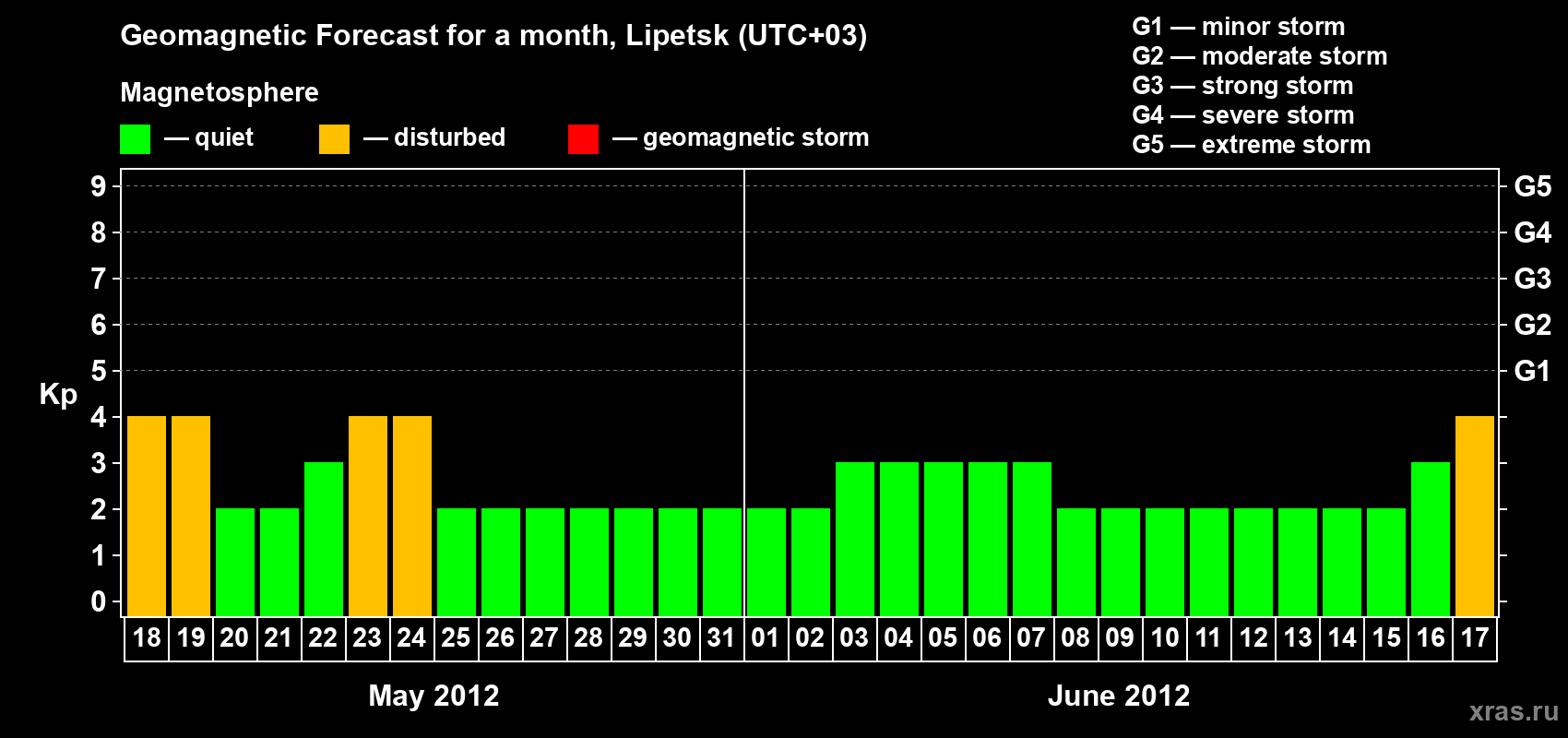 Geomagnetic activity forecast in Lipetsk — May 18, 2012