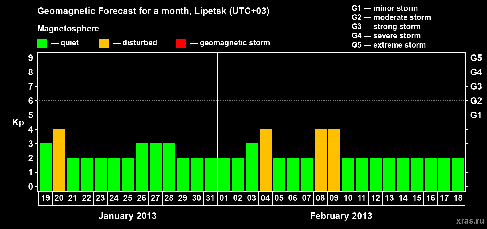 Geomagnetic storm forecast in Lipetsk for Jan 19, 2013