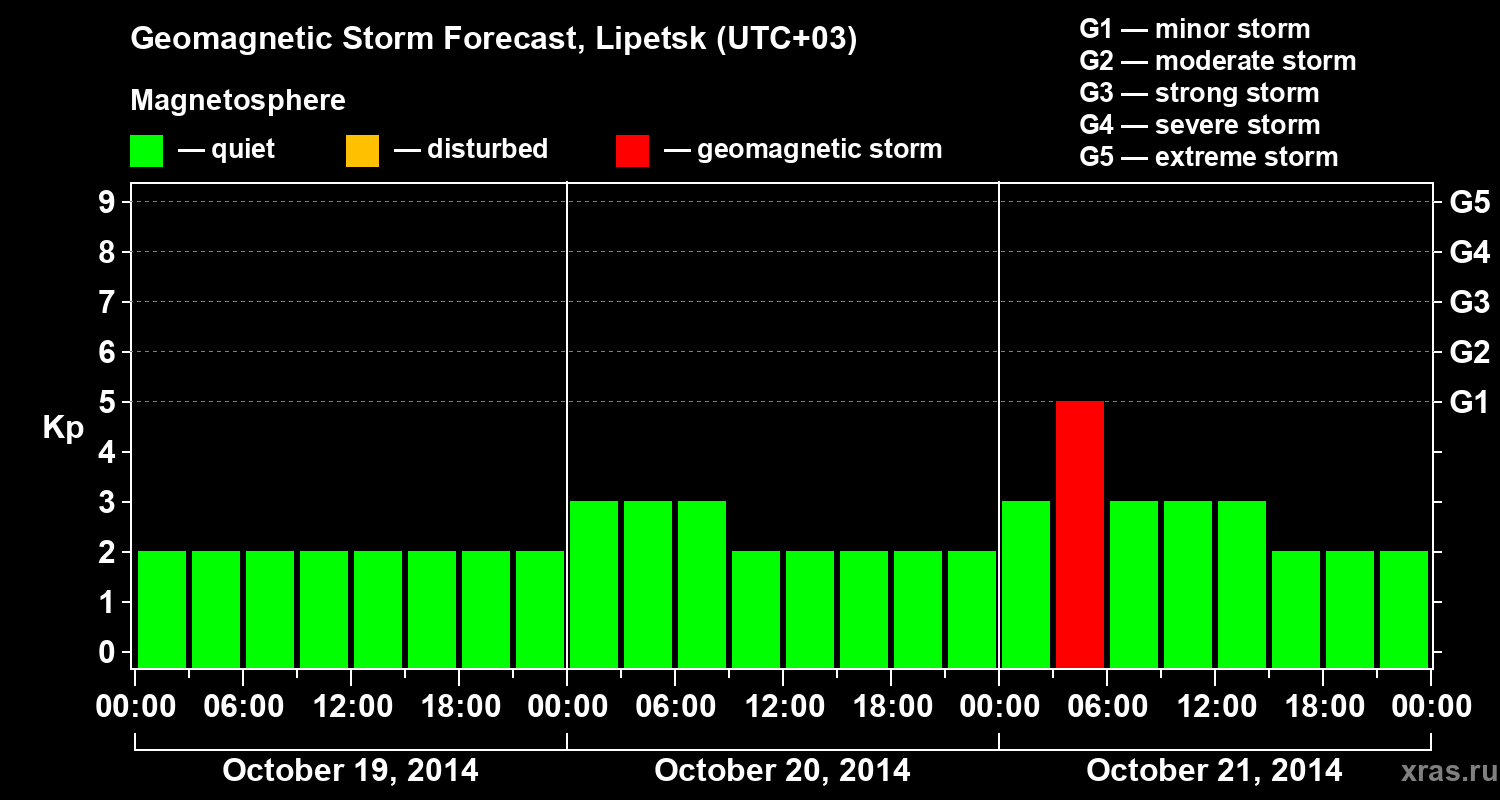 Geomagnetic storm forecast in Lipetsk for Oct 19, 2014