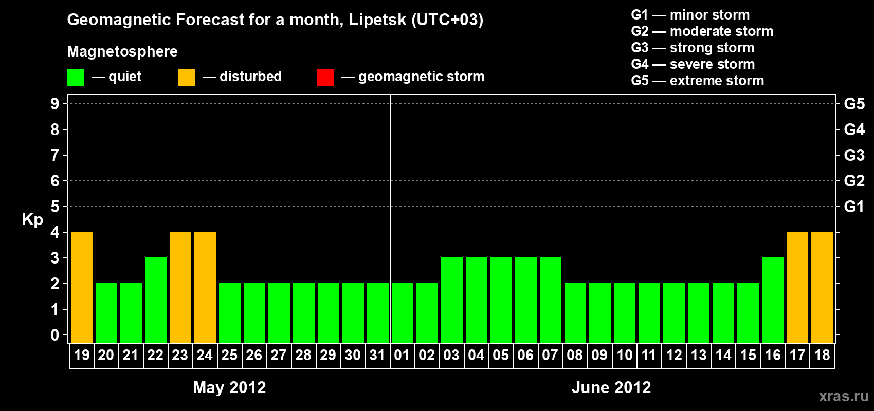 Geomagnetic activity forecast in Lipetsk — May 19, 2012