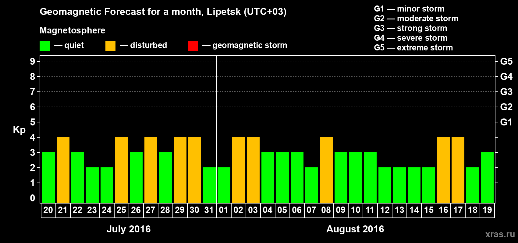 Geomagnetic activity forecast in Lipetsk — Jul 20, 2016
