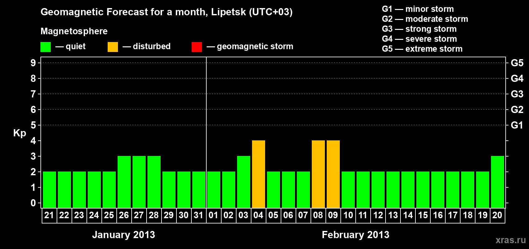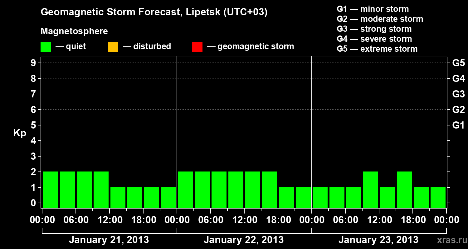 Geomagnetic storm forecast in Lipetsk for Jan 21, 2013