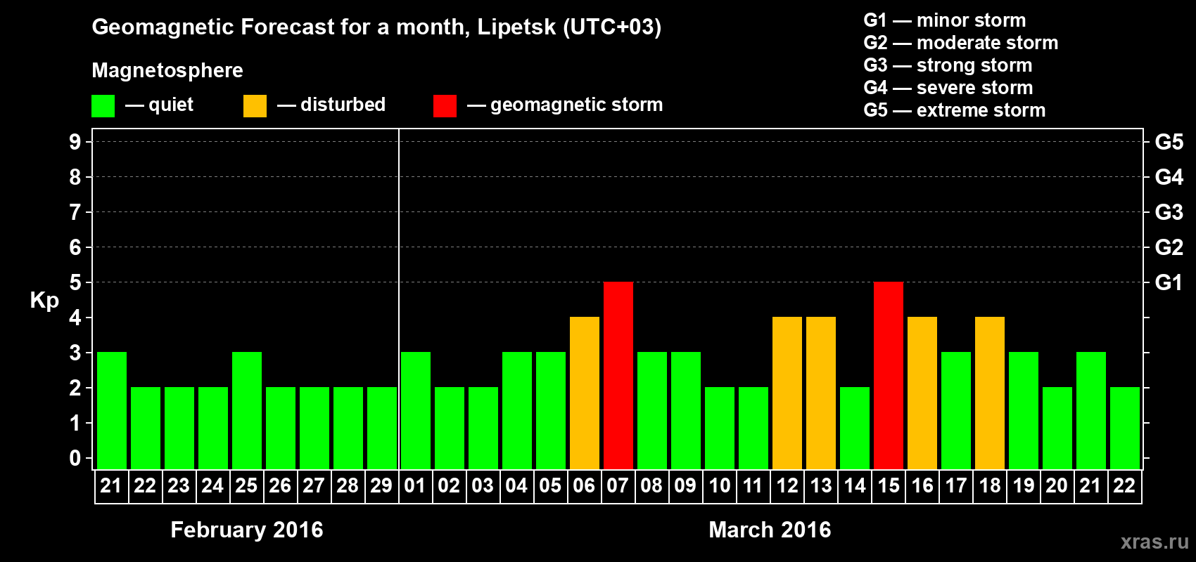 Geomagnetic activity forecast in Lipetsk — Feb 21, 2016