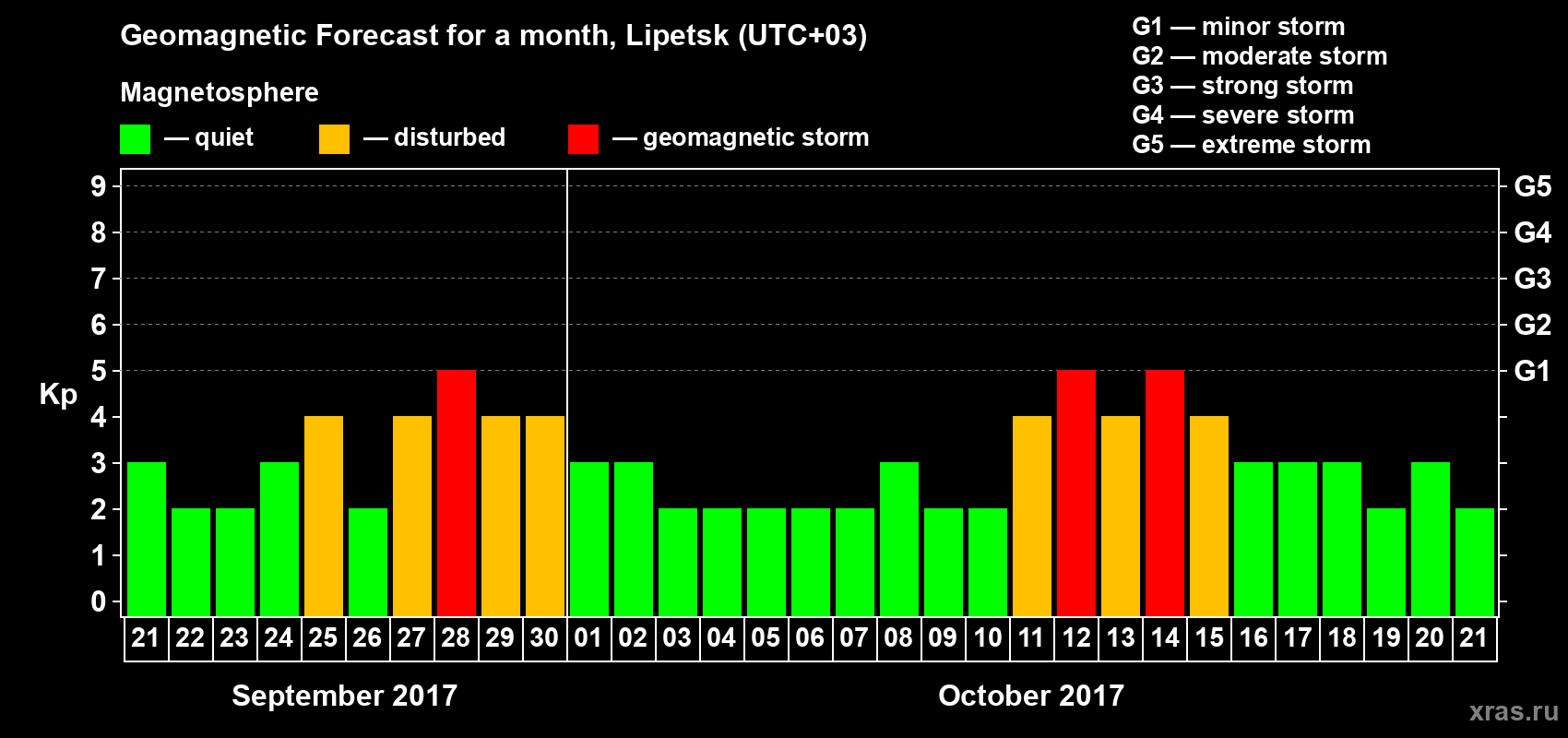 Geomagnetic storm forecast in Lipetsk for Sep 21, 2017