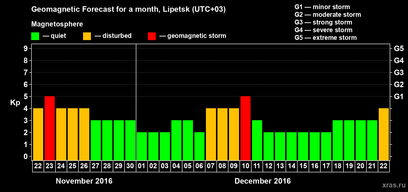 Geomagnetic activity forecast in Lipetsk — Nov 22, 2016