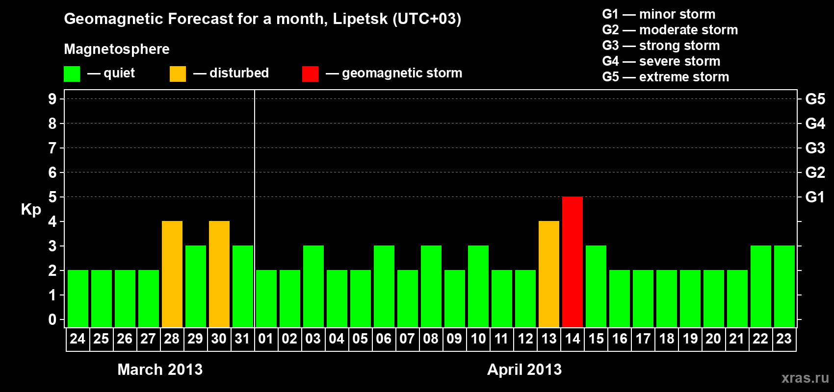 Geomagnetic storm forecast in Lipetsk for Mar 24, 2013