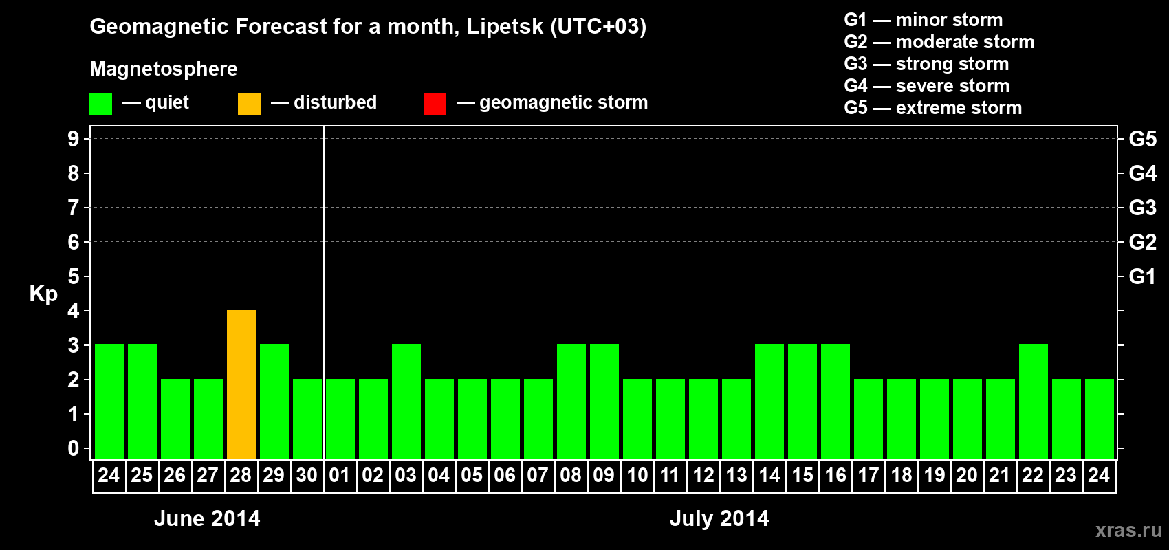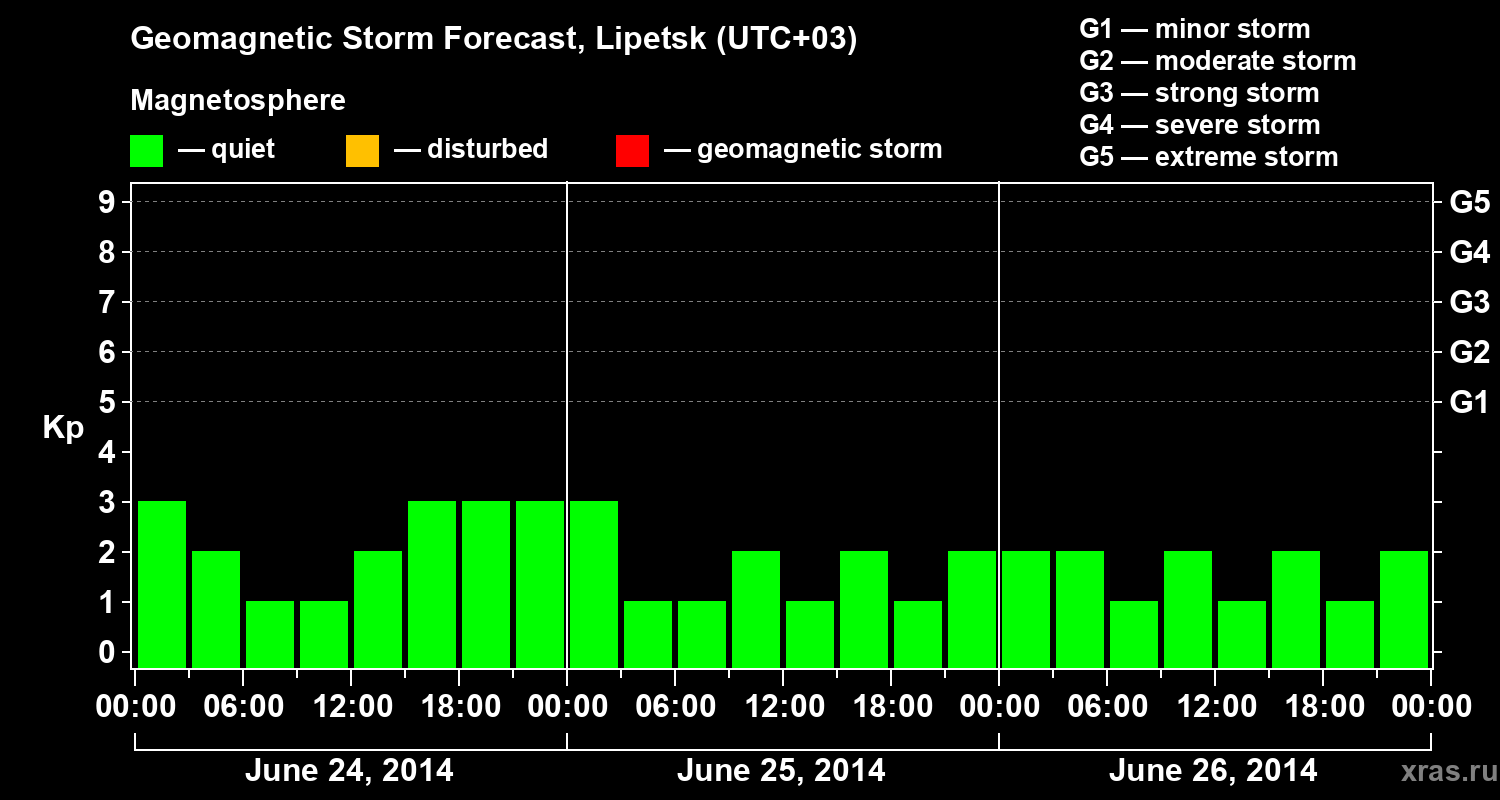 Geomagnetic activity forecast in Lipetsk — Jun 24, 2014