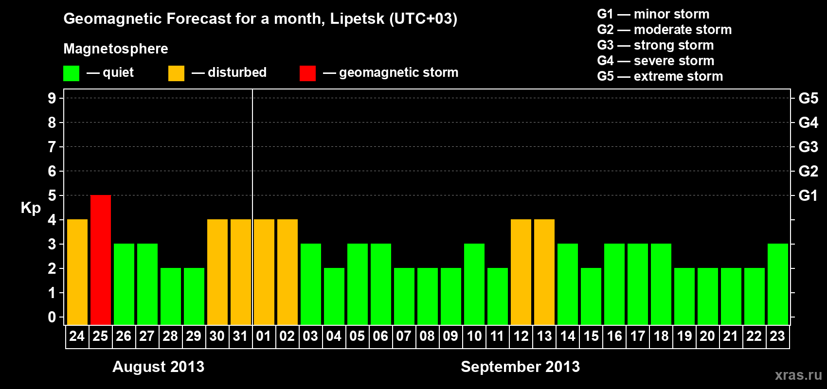 Geomagnetic activity forecast in Lipetsk — Aug 24, 2013