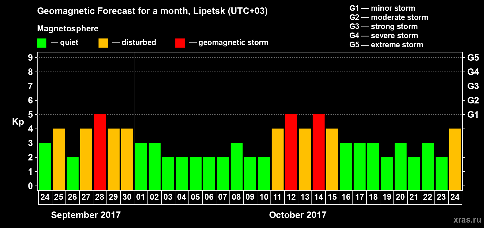 Geomagnetic storm forecast in Lipetsk for Sep 24, 2017
