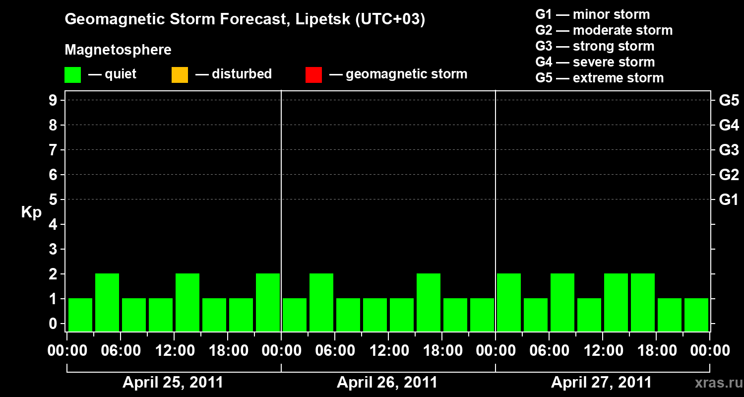 Geomagnetic storm forecast in Lipetsk for Apr 25, 2011
