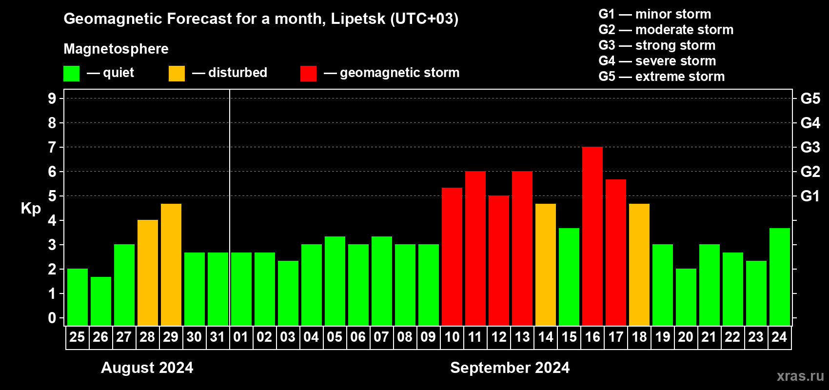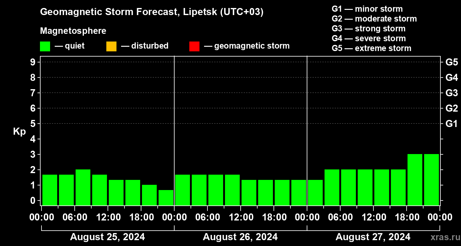 Geomagnetic storm forecast in Lipetsk for Aug 25, 2024
