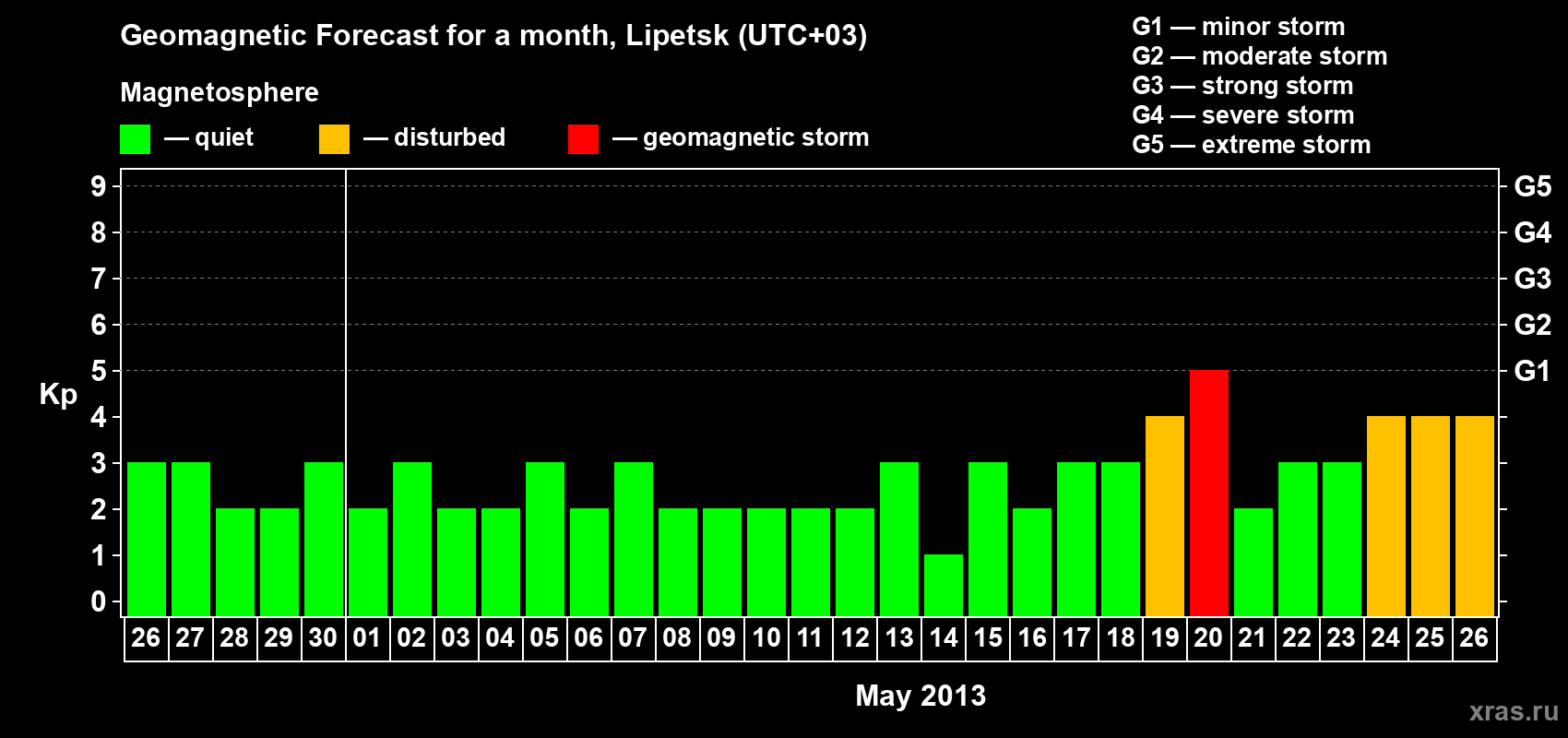 Geomagnetic storm forecast in Lipetsk for Apr 26, 2013
