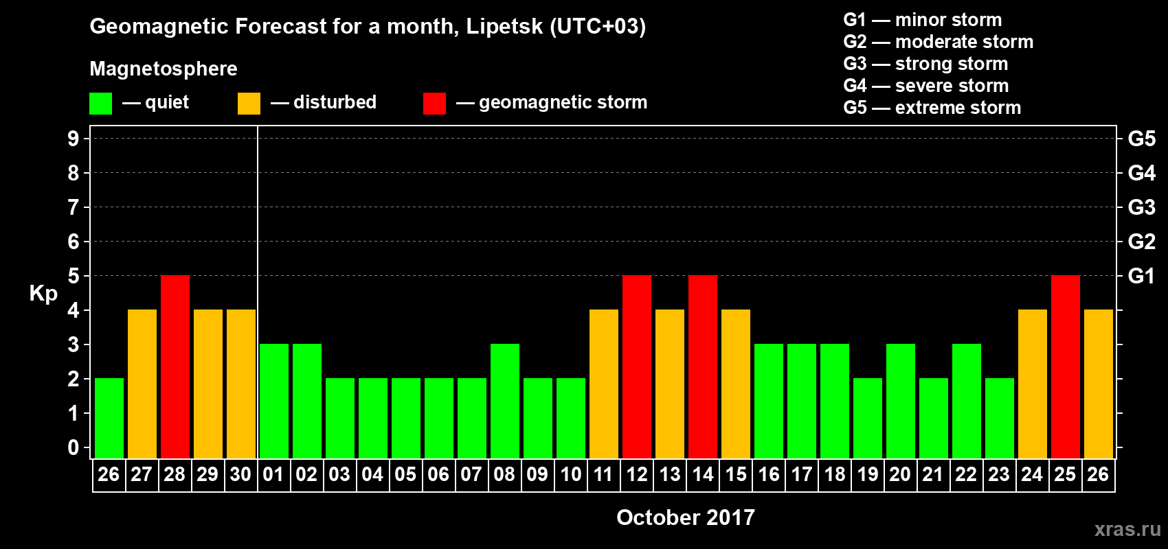 Geomagnetic storm forecast in Lipetsk for Sep 26, 2017