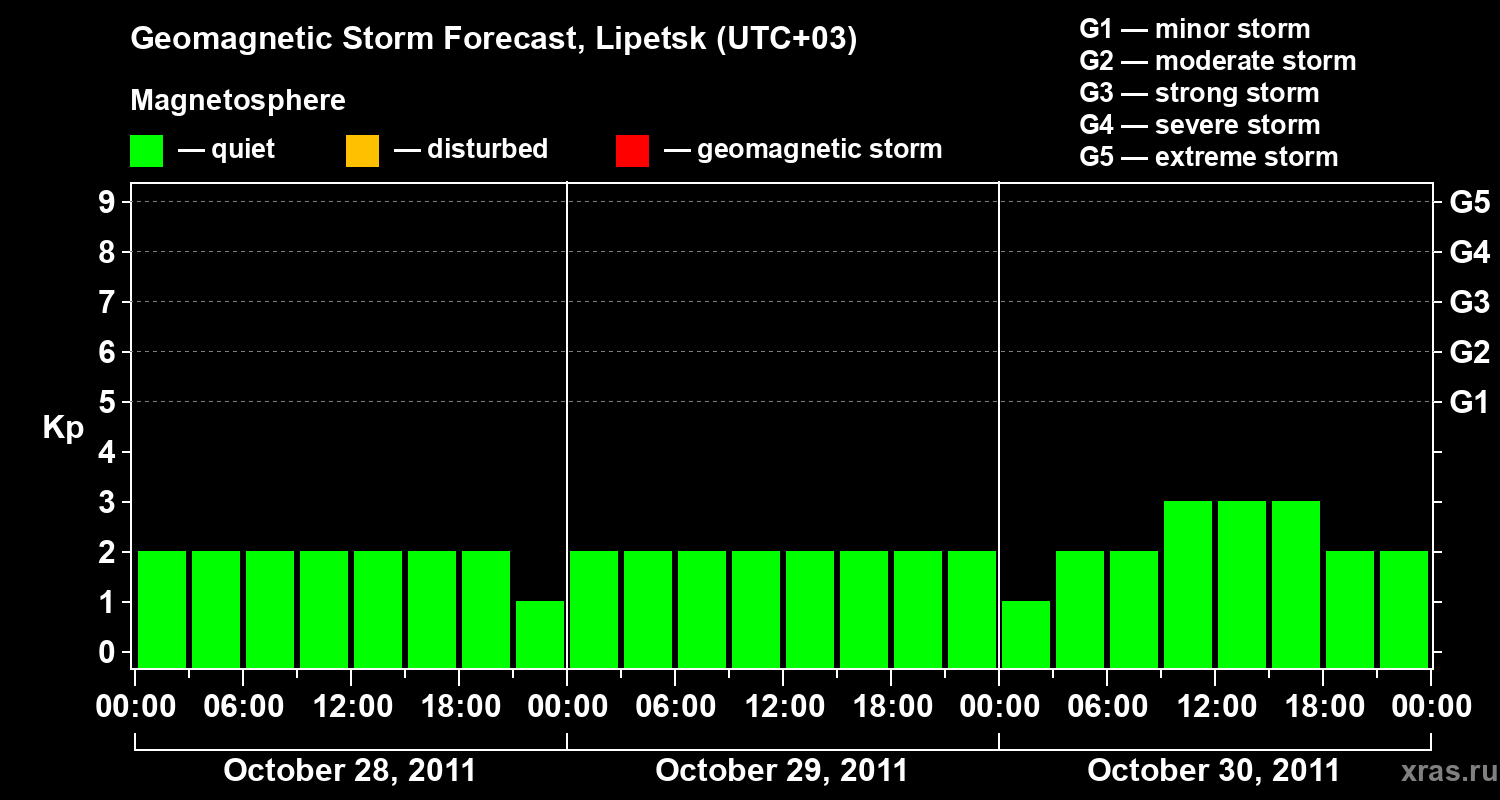 Geomagnetic storm forecast in Lipetsk for Oct 28, 2011