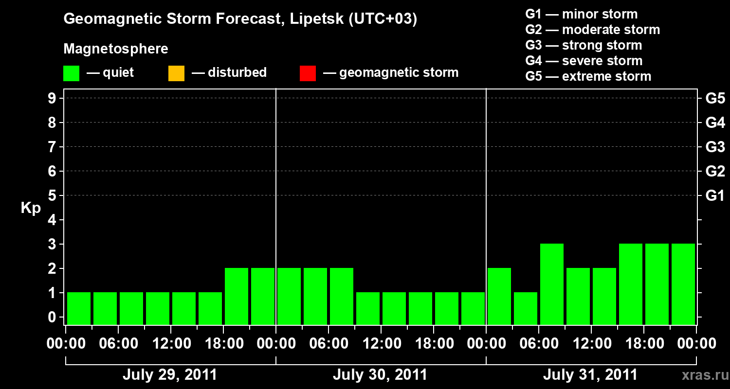 Geomagnetic storm forecast in Lipetsk for Jul 29, 2011