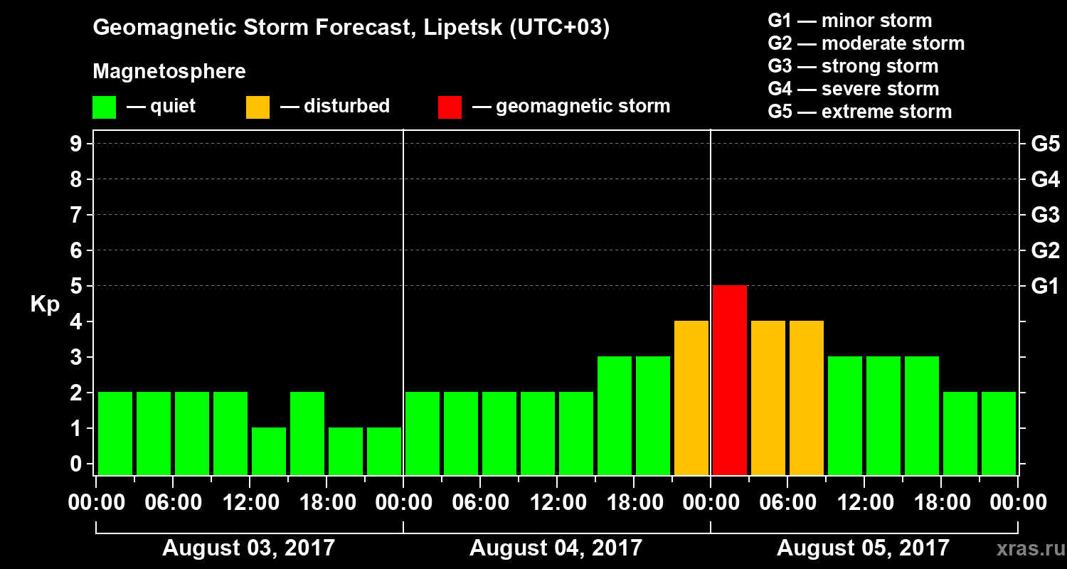 Geomagnetic storm forecast in Lipetsk for Aug 03, 2017