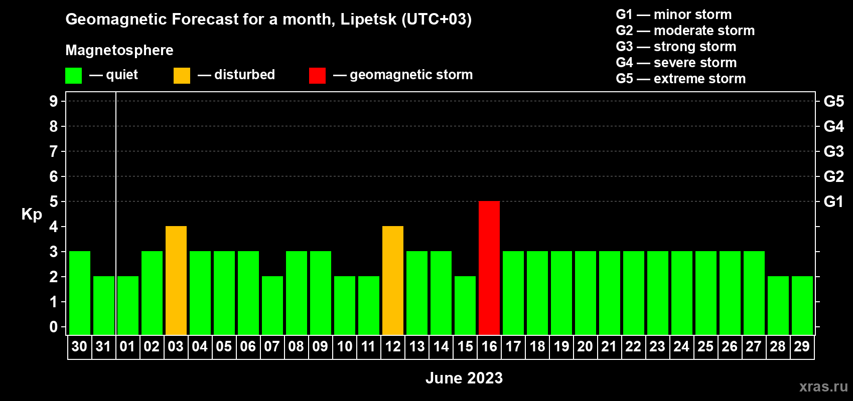 Geomagnetic storm forecast in Lipetsk for May 30, 2023