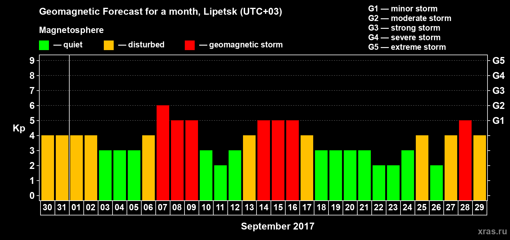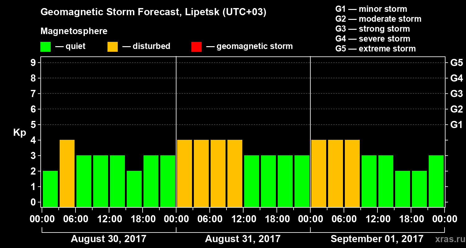 Geomagnetic storm forecast in Lipetsk for Aug 30, 2017