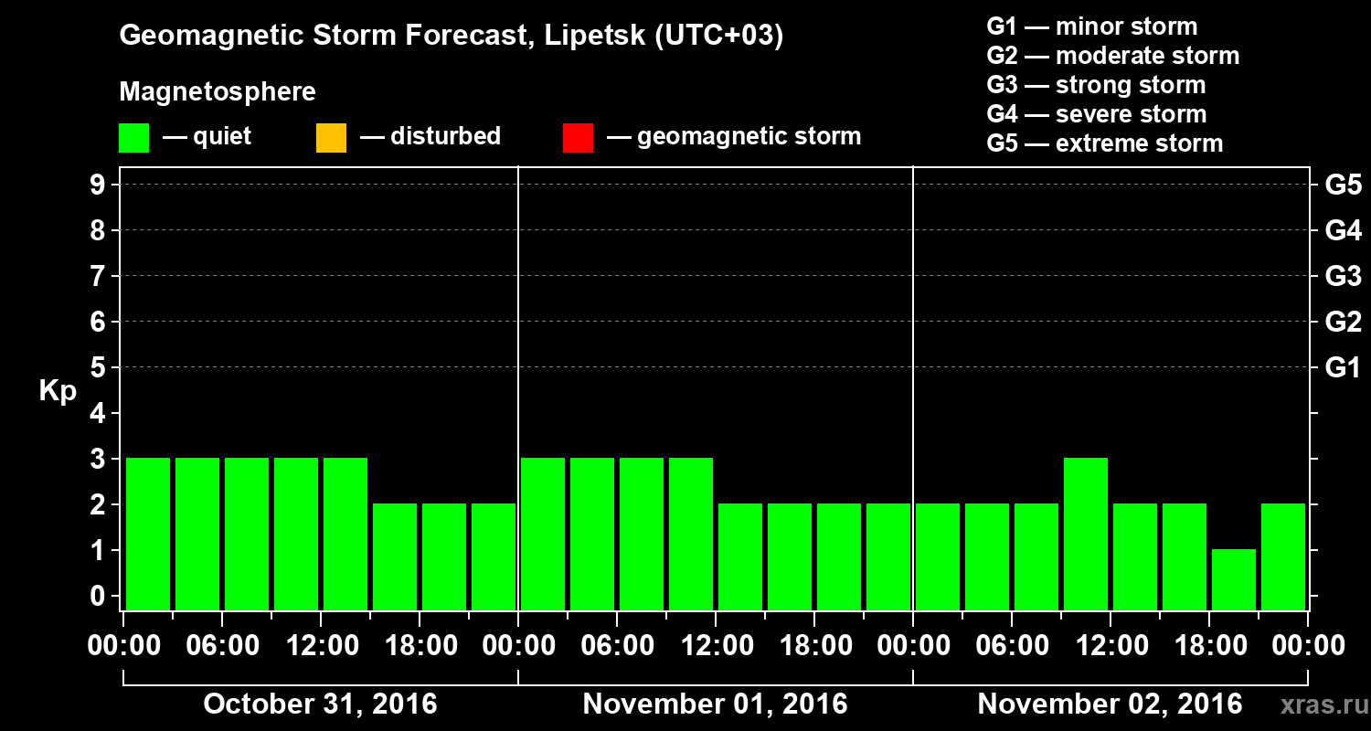 Geomagnetic activity forecast in Lipetsk — Oct 31, 2016