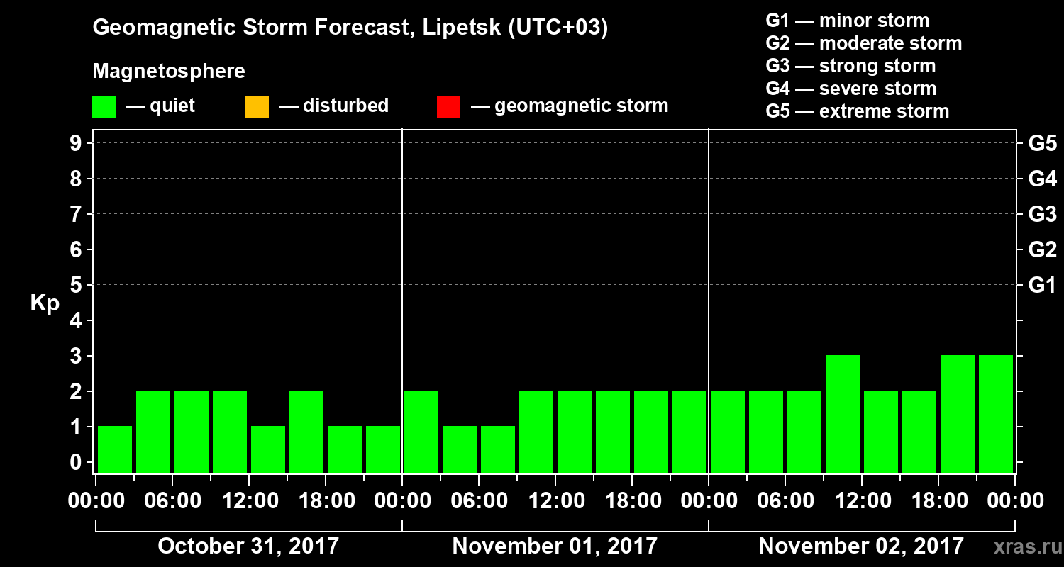 Geomagnetic storm forecast in Lipetsk for Oct 31, 2017