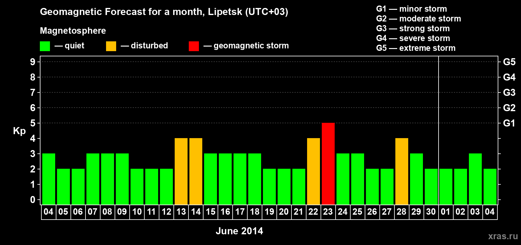 Geomagnetic activity forecast in Lipetsk — Jun 04, 2014