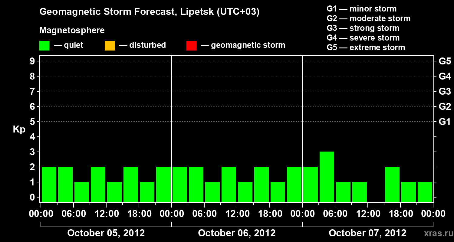 Geomagnetic storm forecast in Lipetsk for Oct 05, 2012