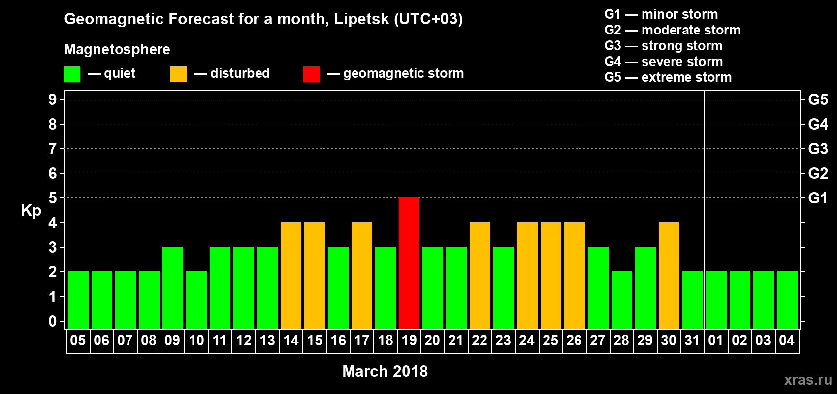 Geomagnetic storm forecast in Lipetsk for Mar 05, 2018