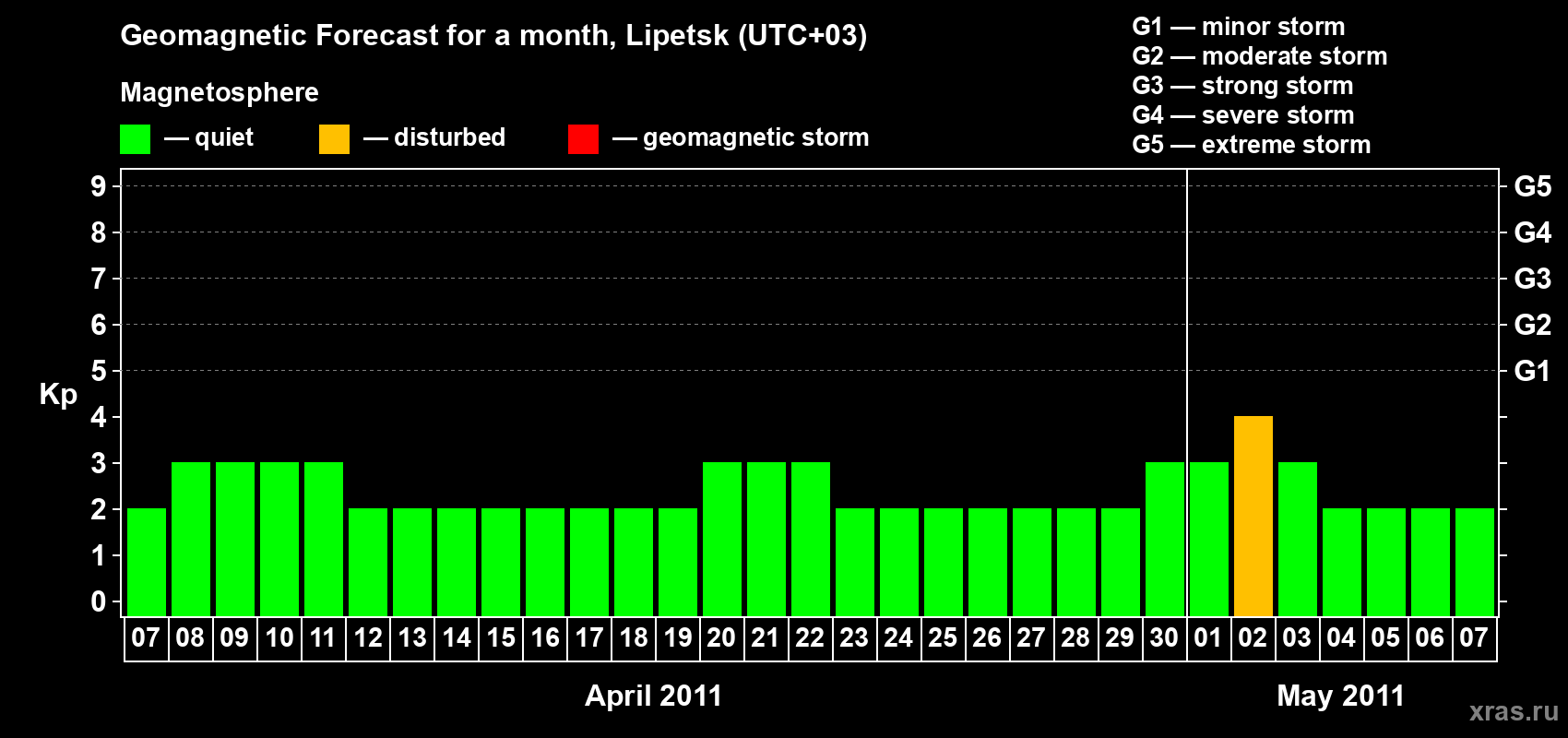 Geomagnetic storm forecast in Lipetsk for Apr 07, 2011