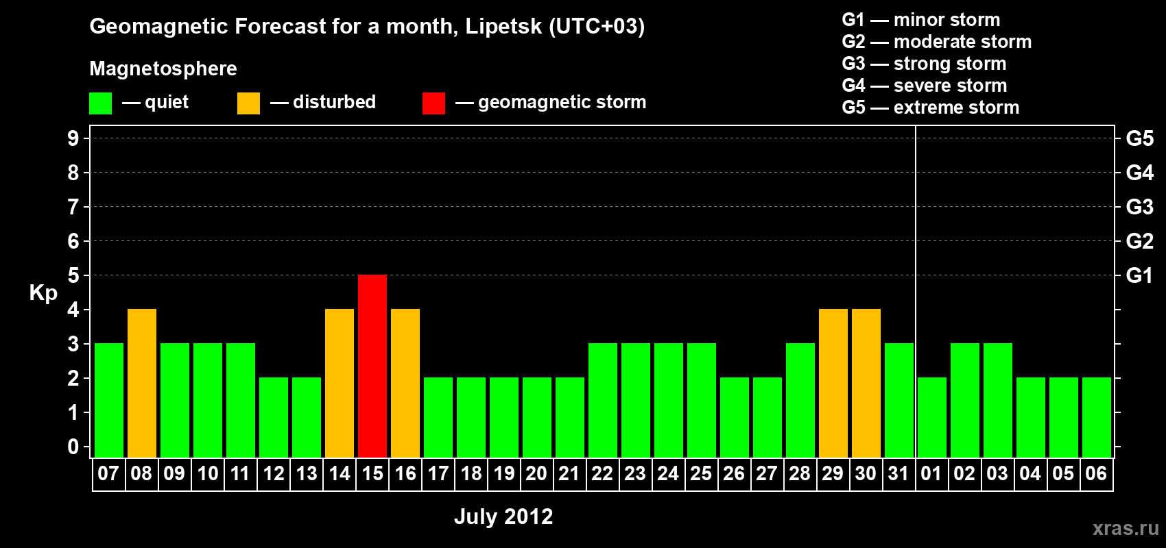 Geomagnetic storm forecast in Lipetsk for Jul 07, 2012