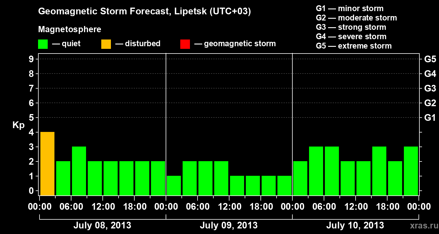Geomagnetic activity forecast in Lipetsk — Jul 08, 2013