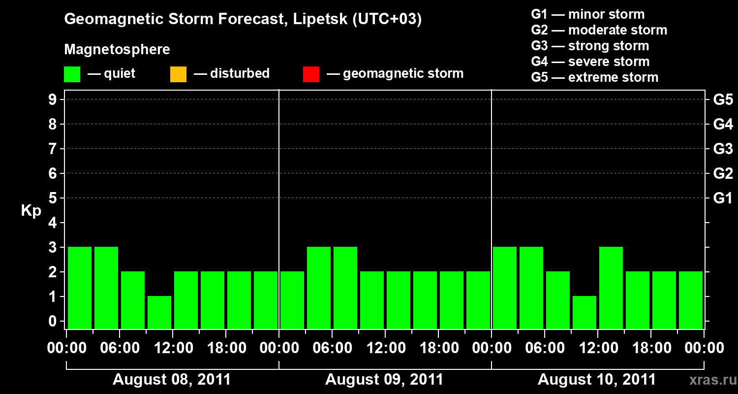 Geomagnetic storm forecast in Lipetsk for Aug 08, 2011