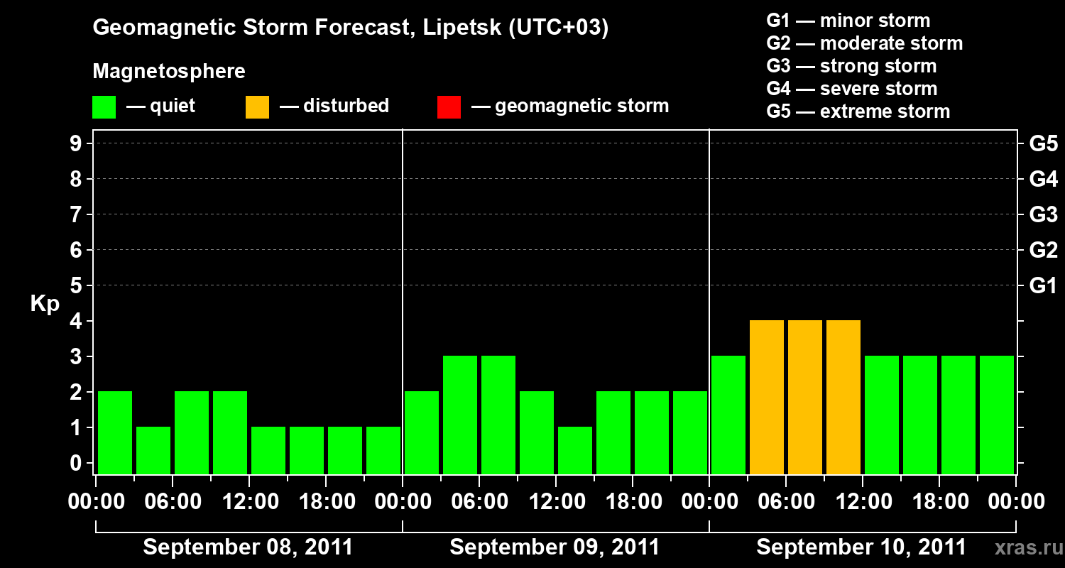 Geomagnetic storm forecast in Lipetsk for Sep 08, 2011