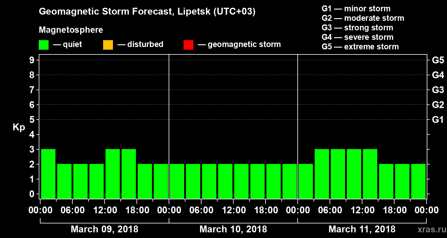 Geomagnetic storm forecast in Lipetsk for Mar 09, 2018