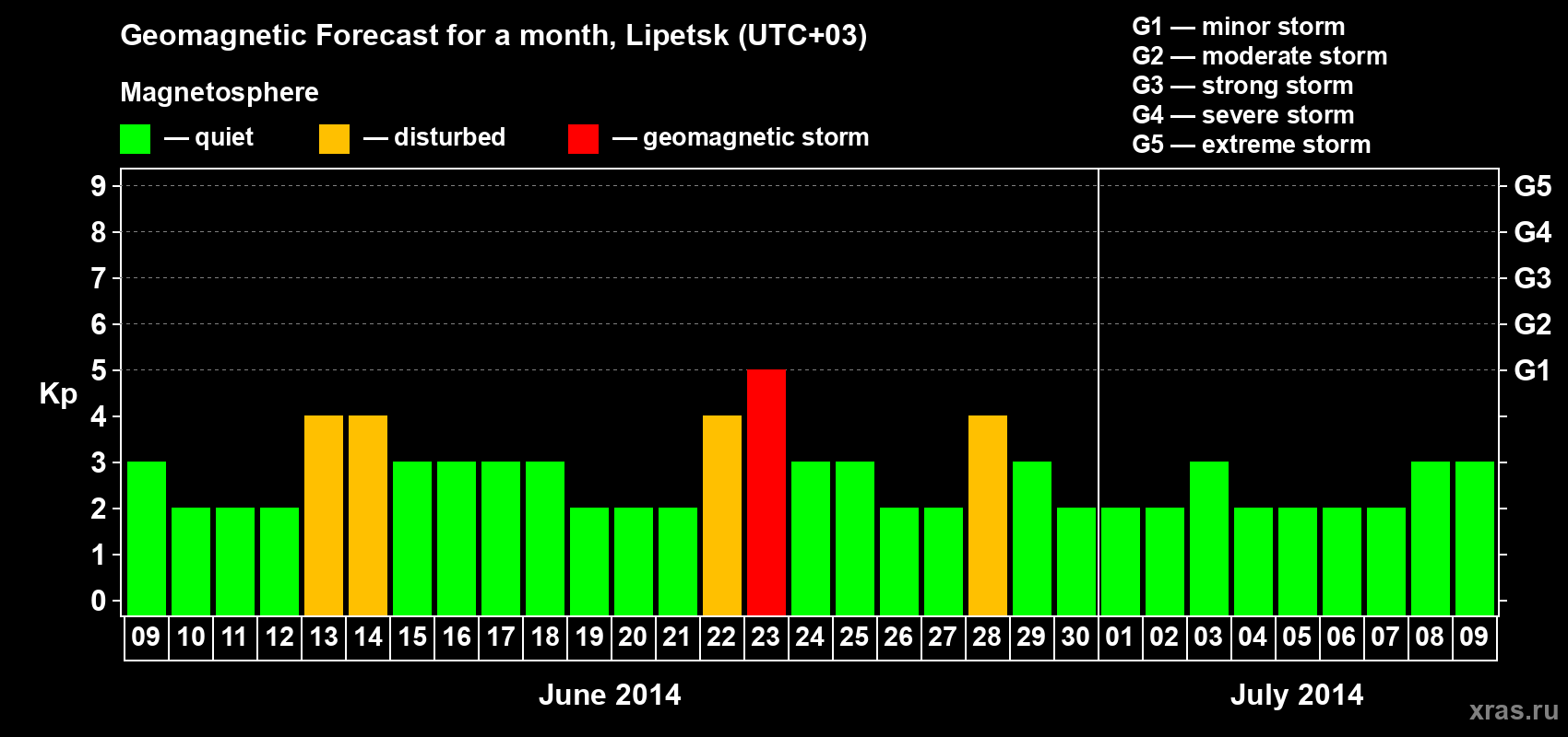 Geomagnetic storm forecast in Lipetsk for Jun 09, 2014