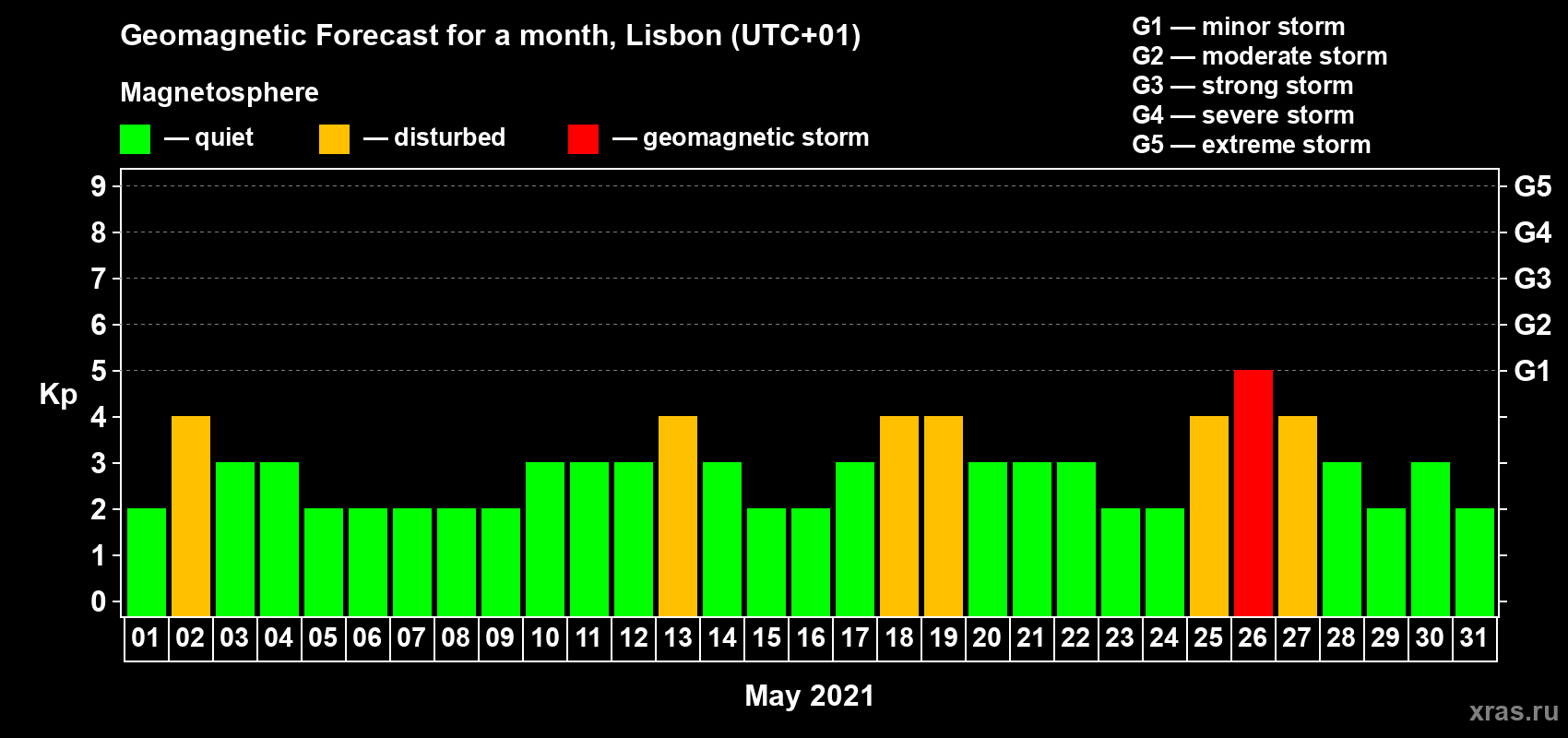 Geomagnetic storm forecast in Lisbon for May 01, 2021
