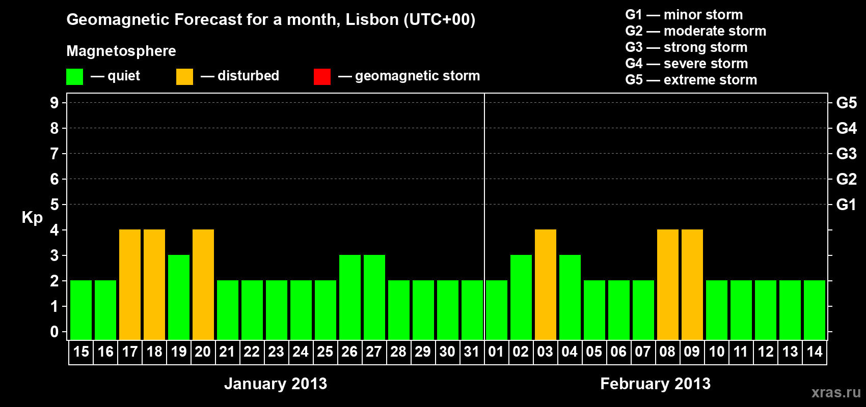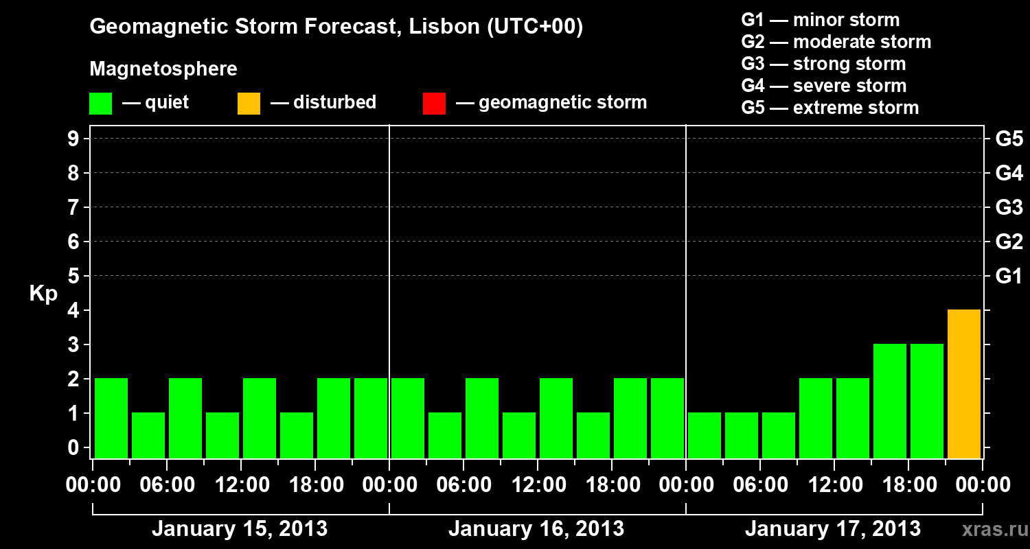 Geomagnetic storm forecast in Lisbon for Jan 15, 2013