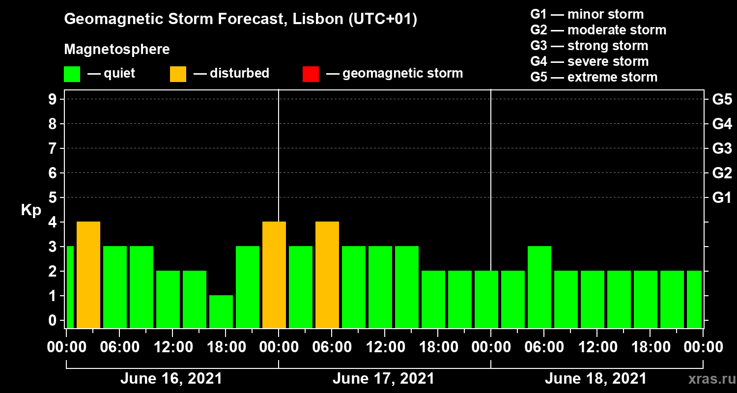 Geomagnetic storm forecast in Lisbon for Jun 16, 2021