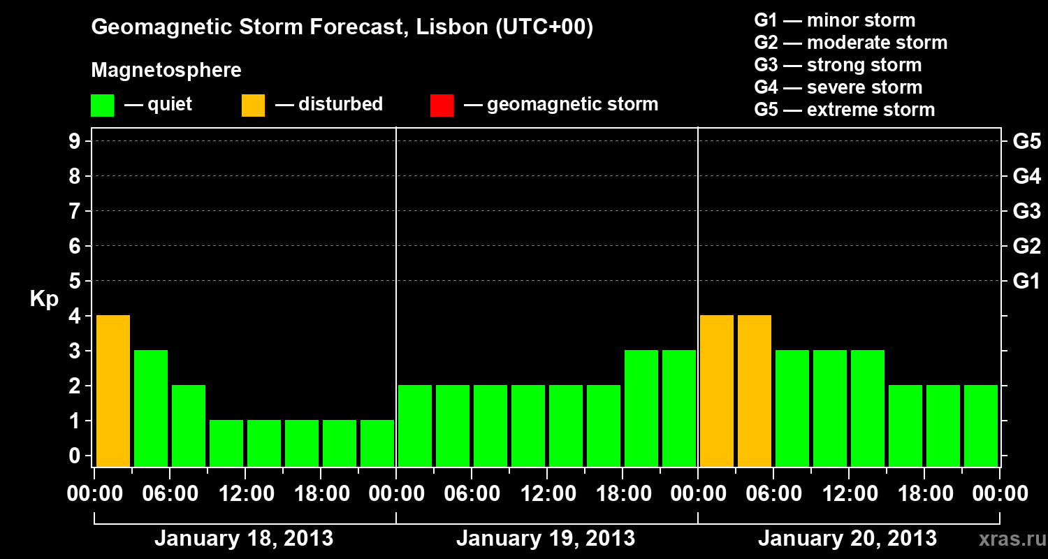 Geomagnetic storm forecast in Lisbon for Jan 18, 2013