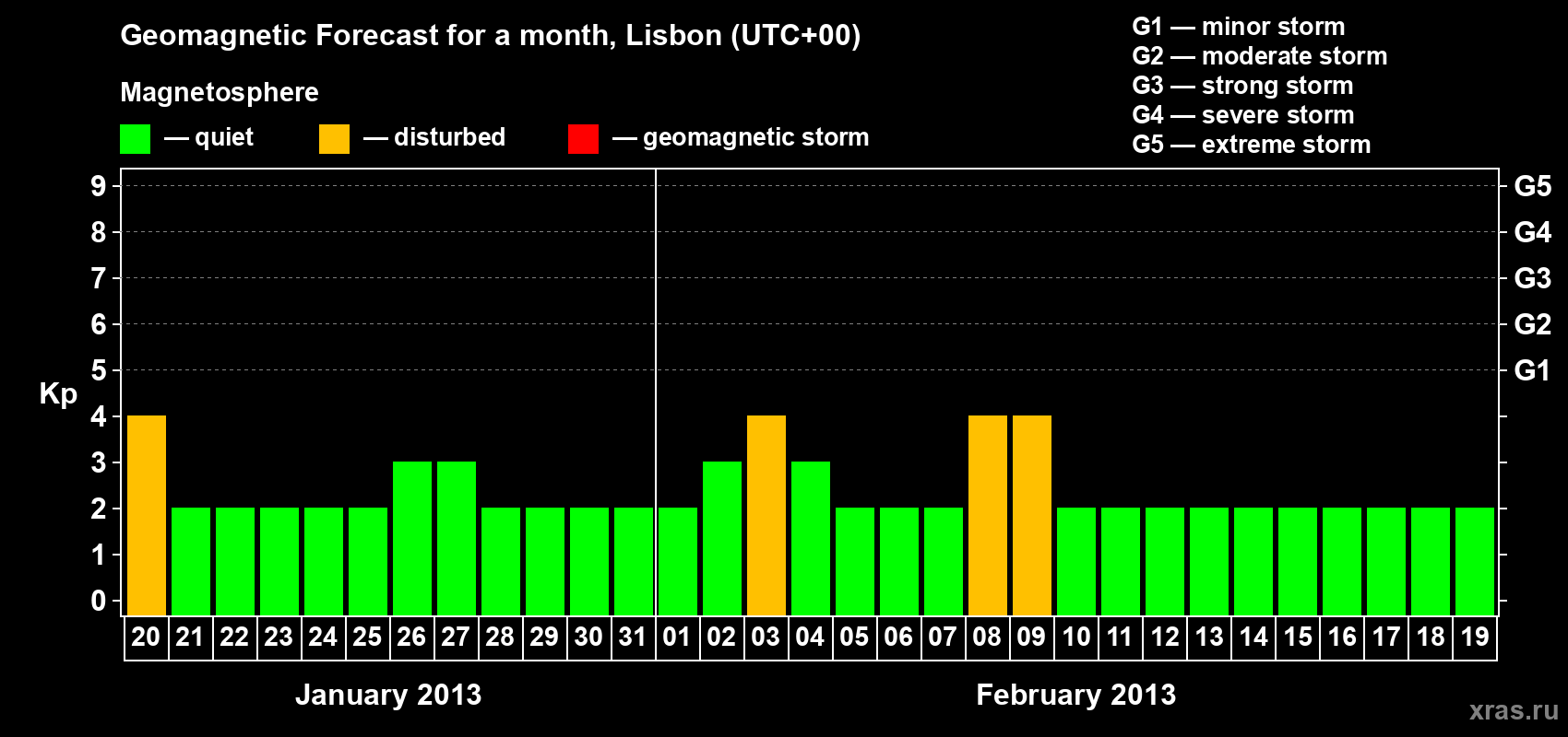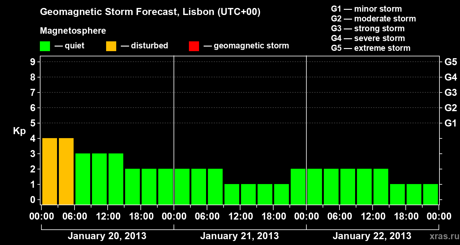 Geomagnetic storm forecast in Lisbon for Jan 20, 2013