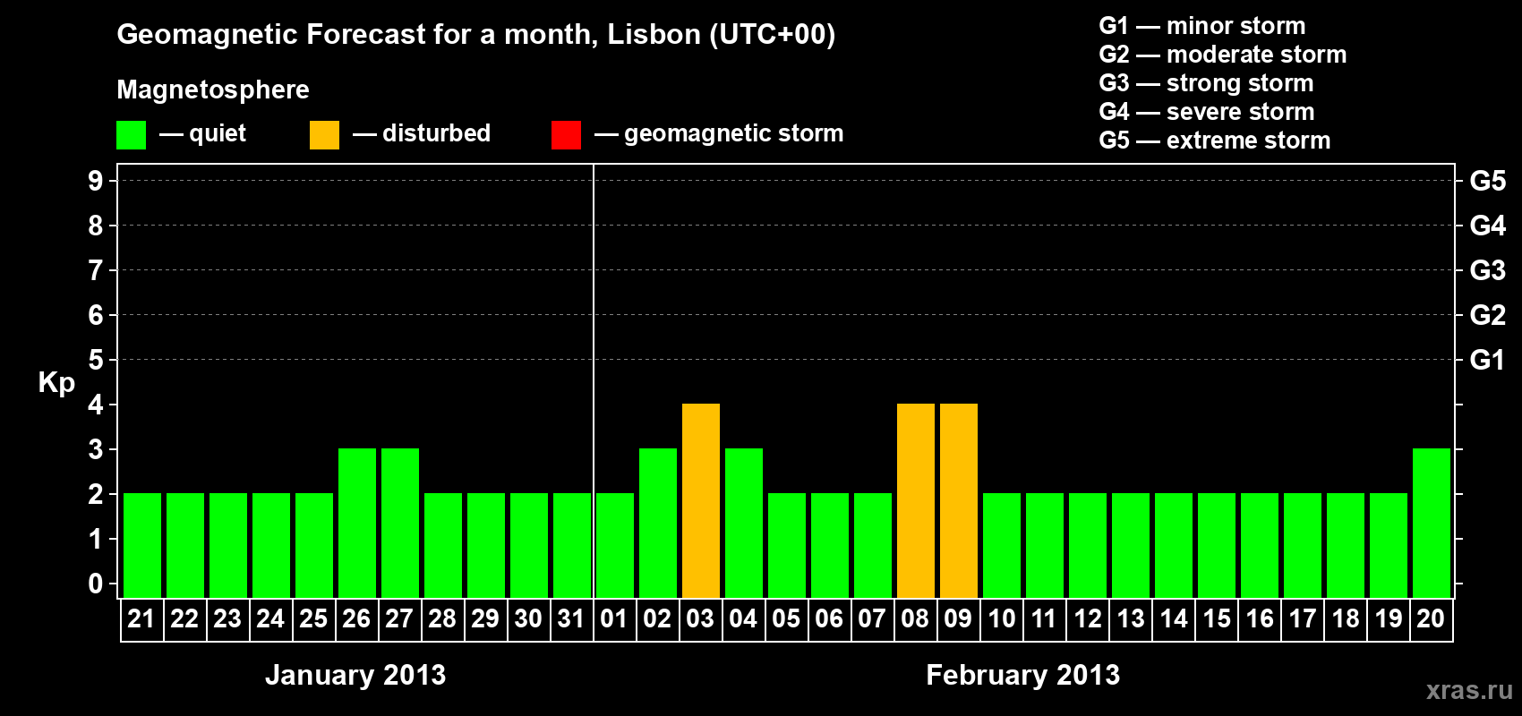Geomagnetic storm forecast in Lisbon for Jan 21, 2013
