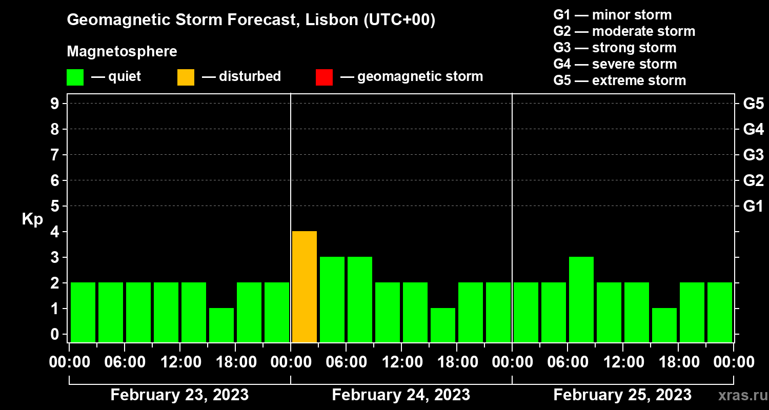 Geomagnetic storm forecast in Lisbon for Feb 23, 2023