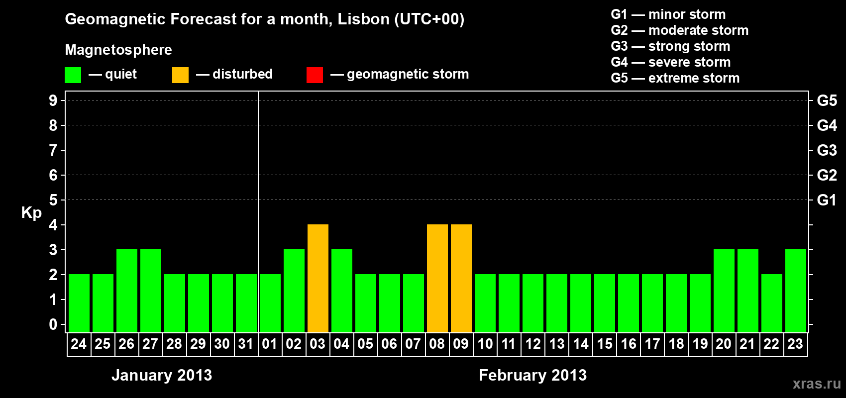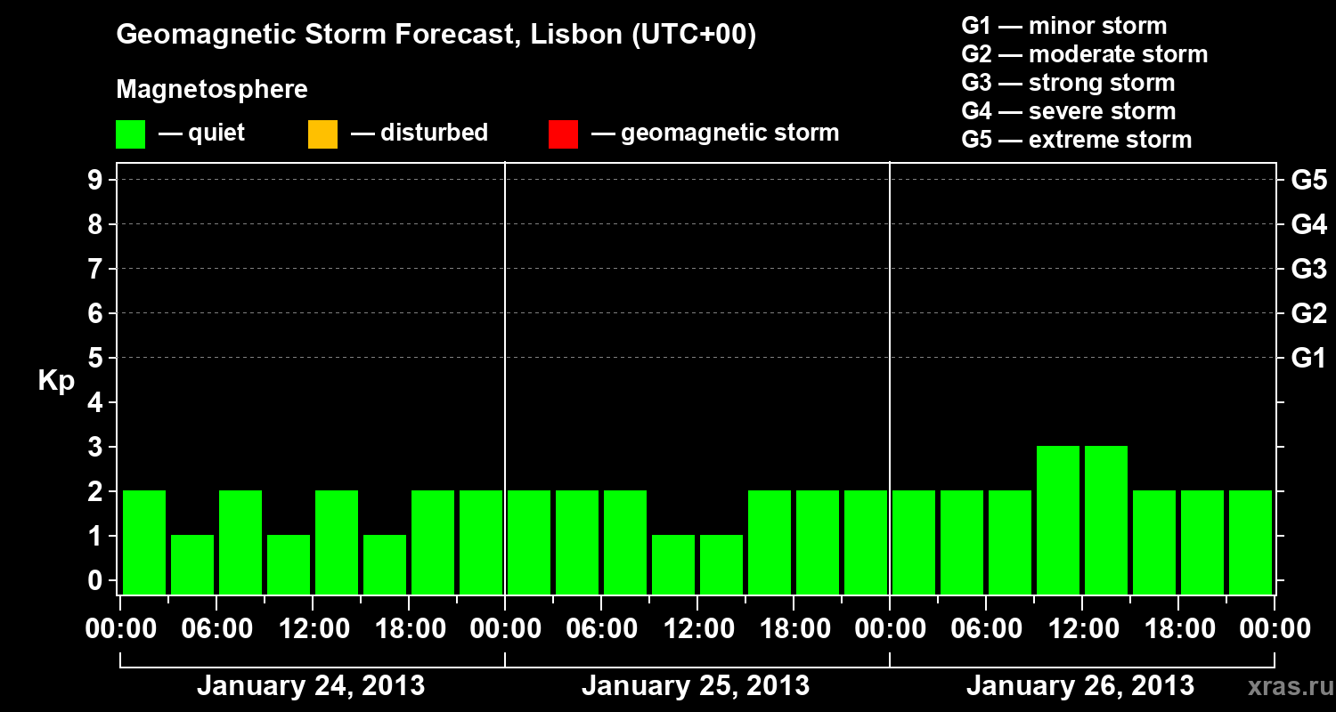 Geomagnetic storm forecast in Lisbon for Jan 24, 2013