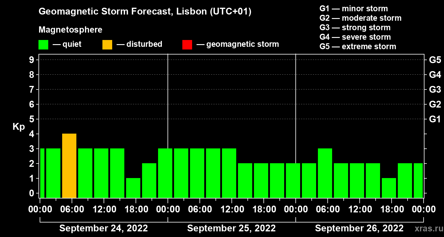 Geomagnetic storm forecast in Lisbon for Sep 24, 2022