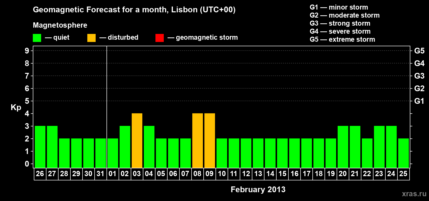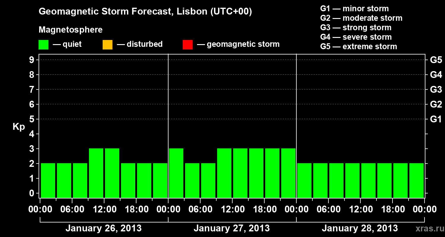 Geomagnetic storm forecast in Lisbon for Jan 26, 2013