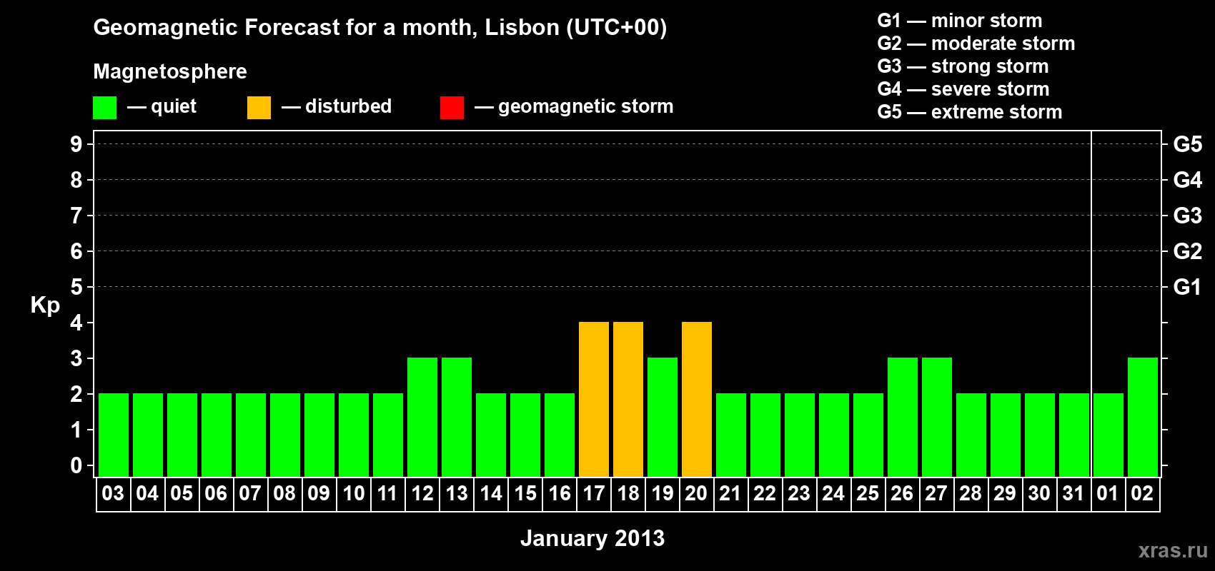 Geomagnetic storm forecast in Lisbon for Jan 03, 2013
