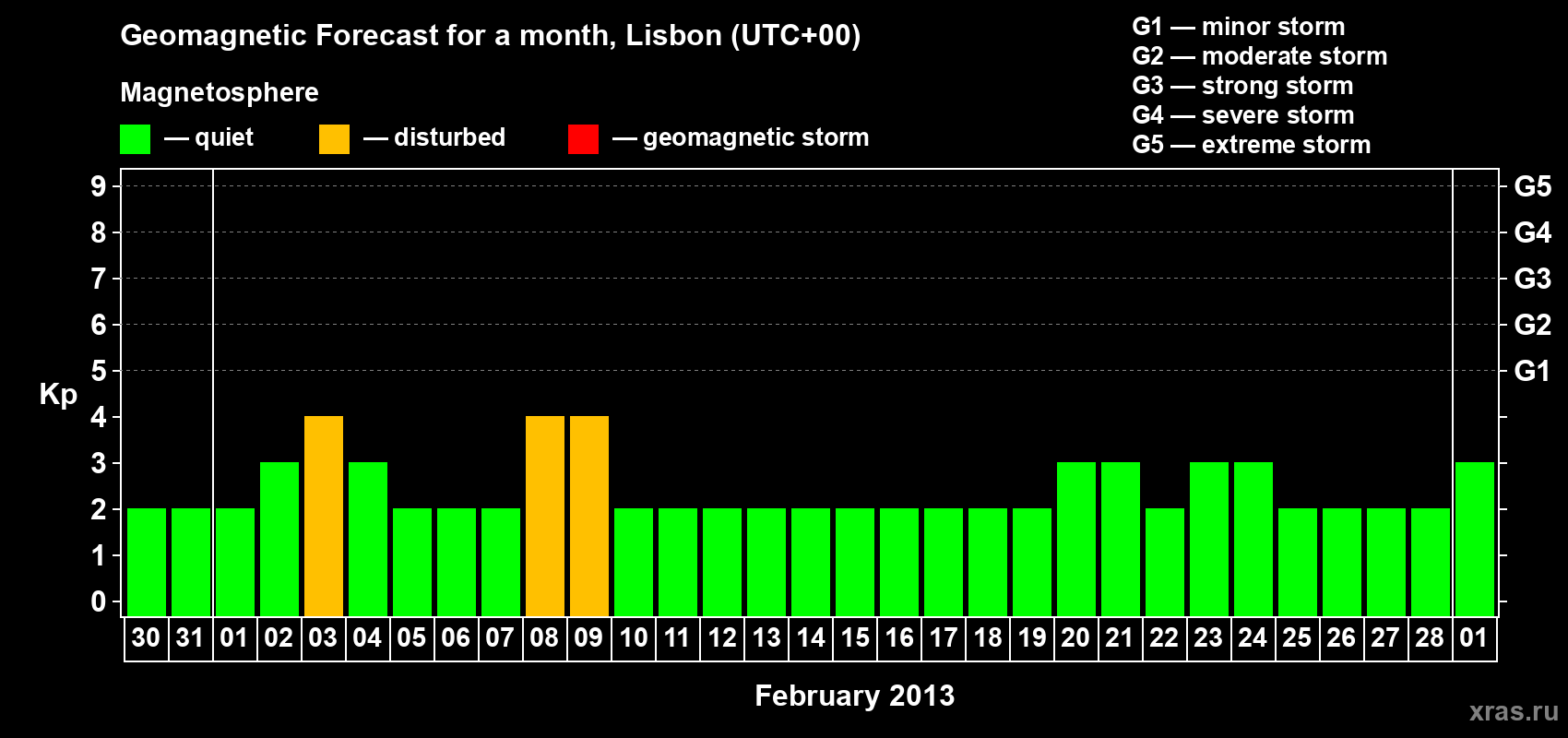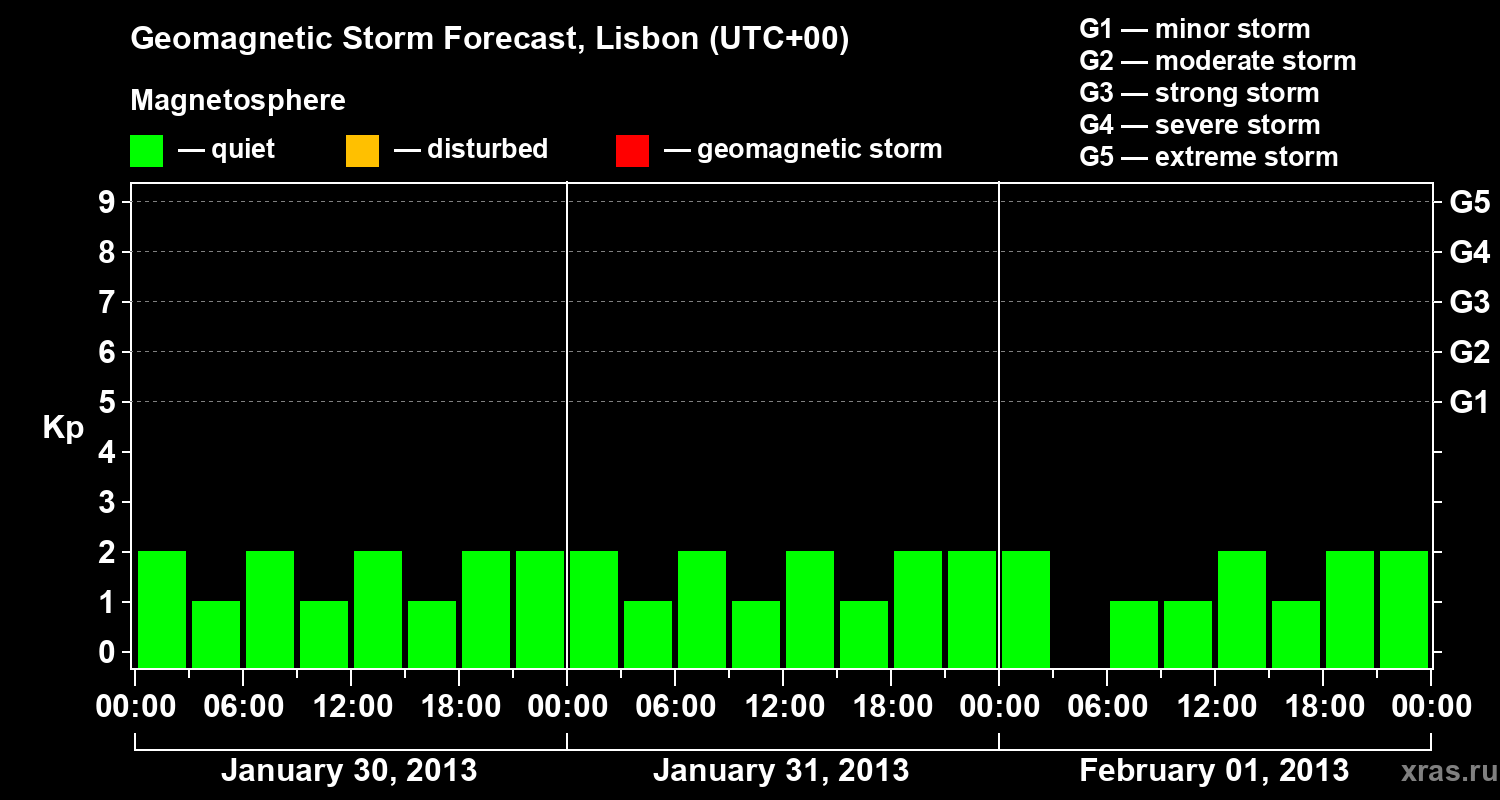 Geomagnetic storm forecast in Lisbon for Jan 30, 2013