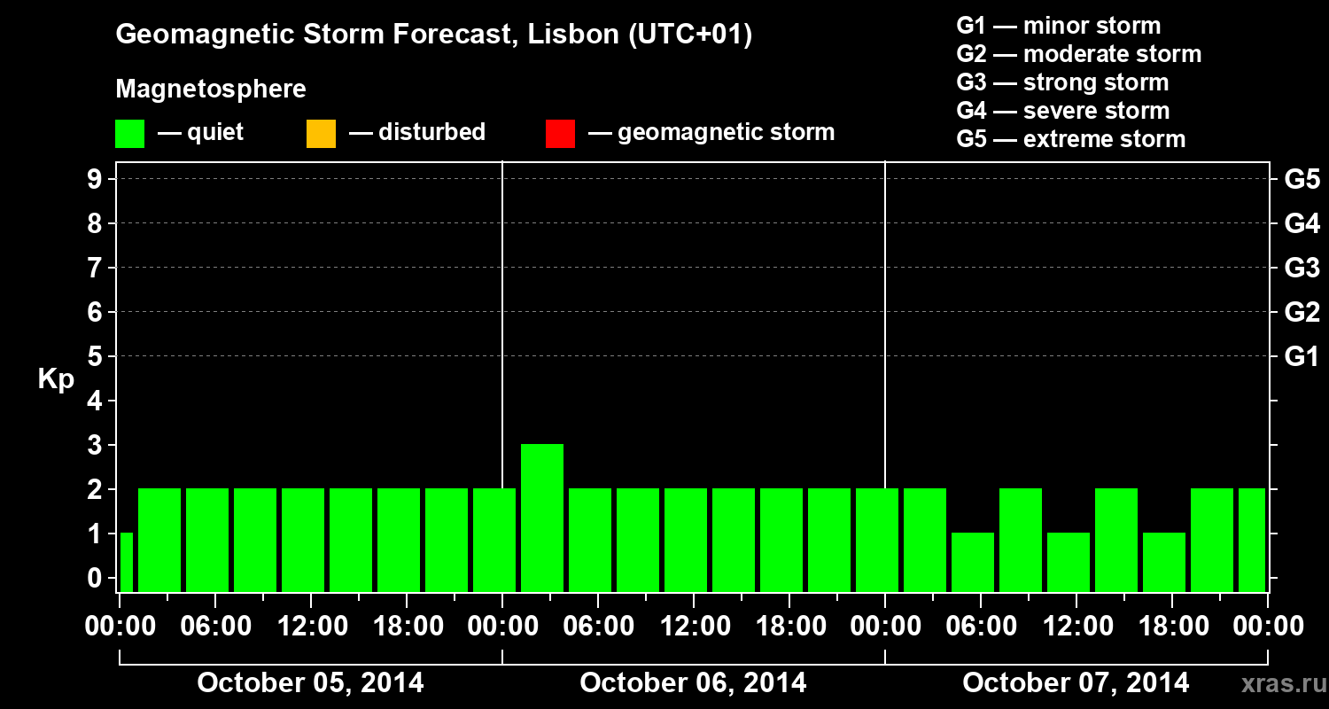Geomagnetic storm forecast in Lisbon for Oct 05, 2014