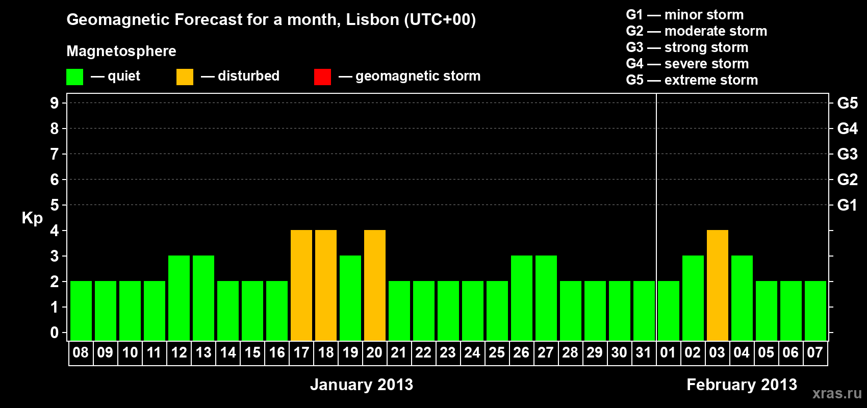 Geomagnetic storm forecast in Lisbon for Jan 08, 2013