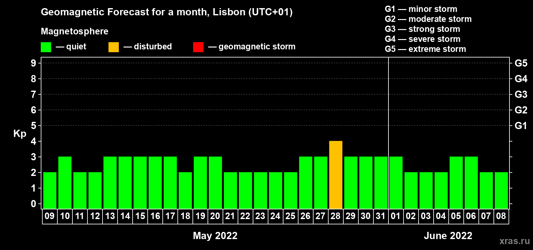 Geomagnetic storm forecast in Lisbon for May 09, 2022